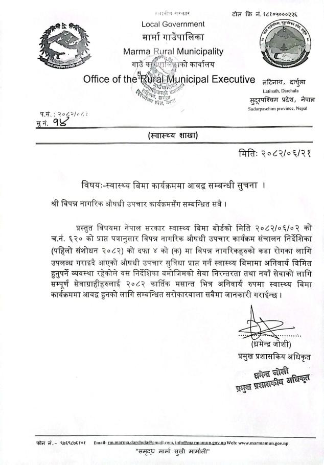 स्वास्थ्य विमा कार्यक्रममा आवद्ध हुने बारे सूचना ।